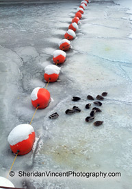 An absolutely frigid wind at the Irondequoit Bay Outlet caused even the ducks to ball up to protect against the wind.