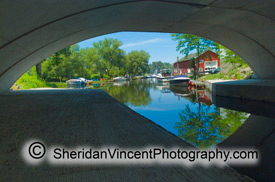 At Salmon Creek in Pultneyville, NY this shot required a lot of image manipulations to maintain detail in the dark bridge underpass and the brightly lit creek beyond.