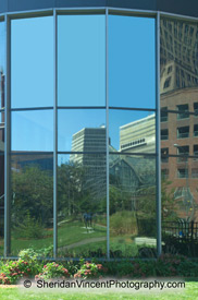 With a bit of effort with Photoshop to remove polarizing filter artifacts in the windows, this shot was taken from St. Mary's Church garden of the Excellus Blue Cross/Blue Shield building.