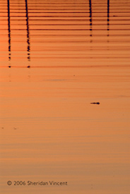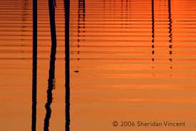 of abstract patterns of shadows rippled on the bay’s wavelets. The intense